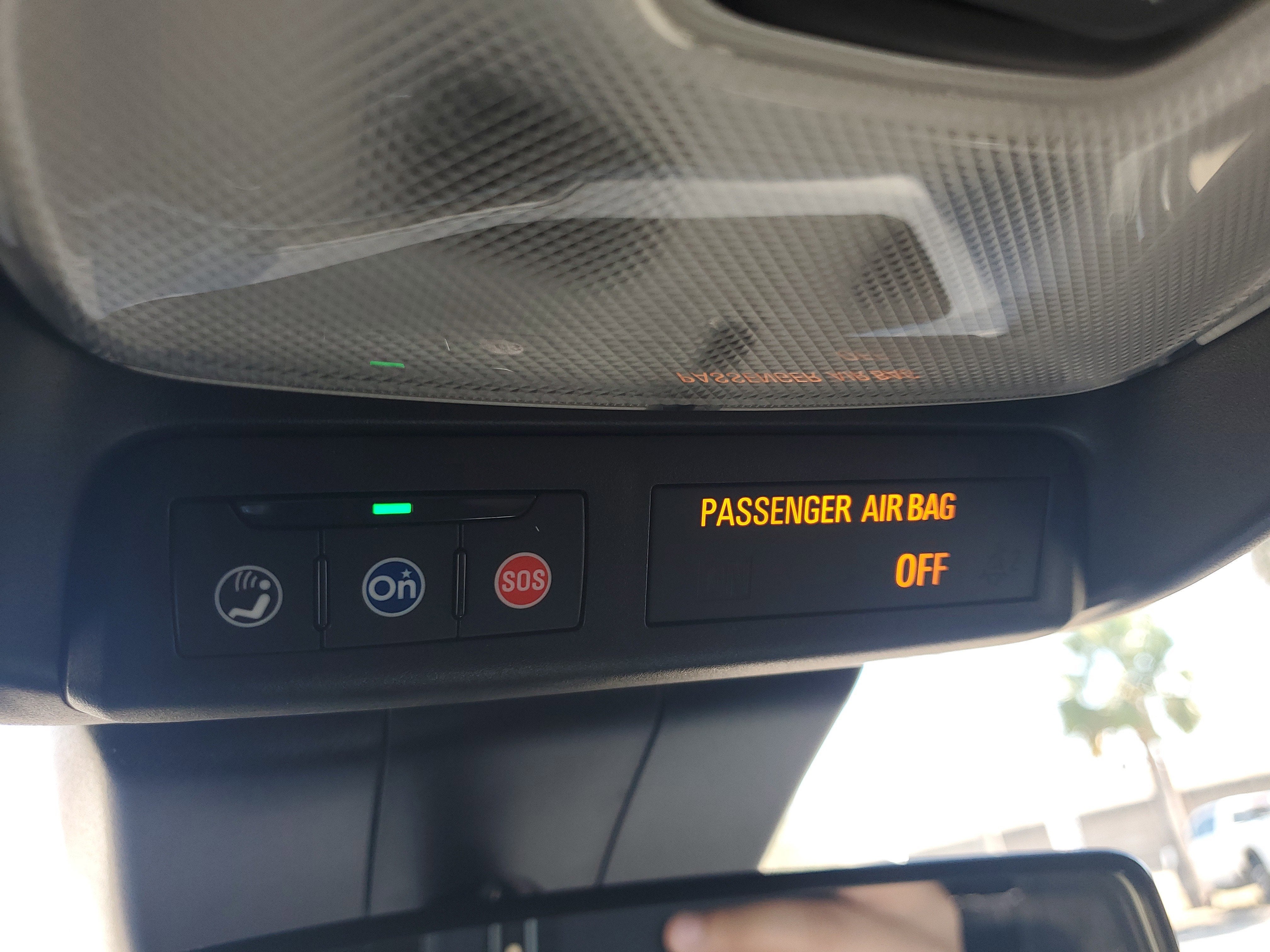 - Includes Passenger Sensing System which automatically switches the front passenger seat frontal airbag on or off and illuminates a status light that indicates whether the airbag is on or off1
