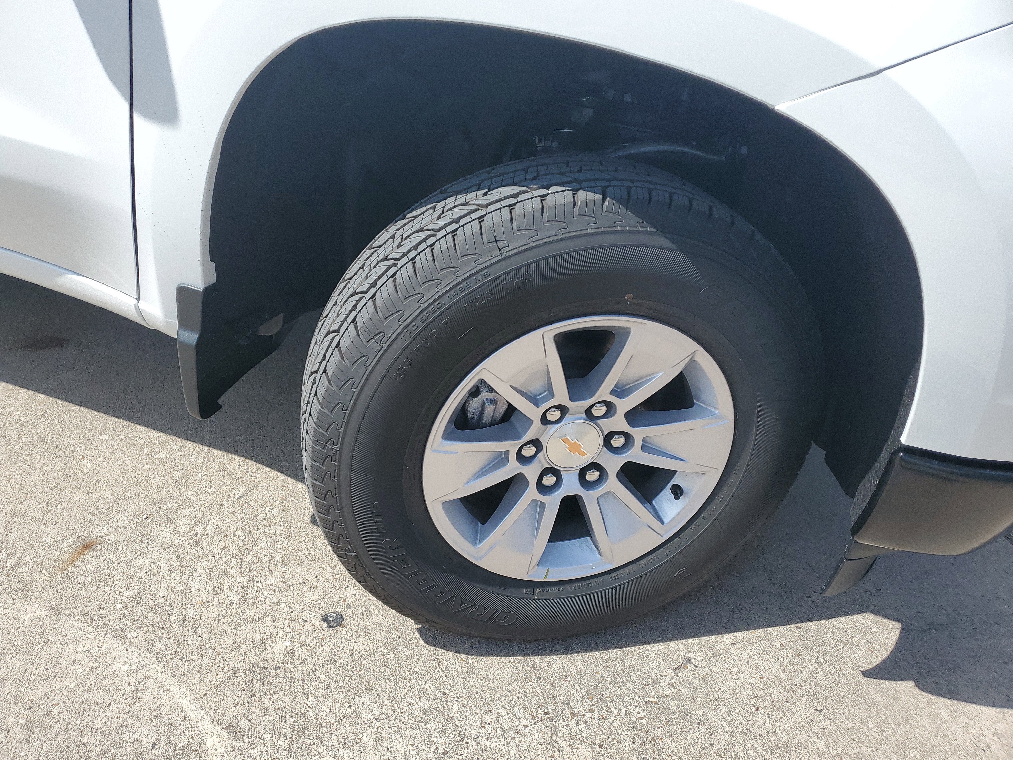 Window, power front, drivers express up/down, Wi-Fi Hotspot capable (Terms and limitations apply. See onstar.com or dealer for details.), Wheels, 17" x 8" (43.2 cm x 20.3 cm) Ultra Silver painted steel, Wheel, 17" x 8" (43.2 cm x 20.3 cm) full-size, steel spare, USB Ports, 2, Charge/Data ports located on instrument panel, Transmission, 8-speed automatic, electronically controlled with overdrive and tow/haul mode. Includes Cruise Grade Braking and Powertrain Grade Braking (Included and only available with (L3B) TurboMax engine. Requires (AZ3) front 40/20/40 split-bench seats.), Tires, 255/70R17 all-season, blackwall, Tire, spare 255/70R17 all-season, blackwall (Included with (QBN) 255/70R17 all-season, blackwall tires.), Tire Pressure Monitoring System, auto learn includes Tire Fill Alert (does not apply to spare tire), Tire carrier lock, keyed cylinder lock that utilizes same key as ignition and door.