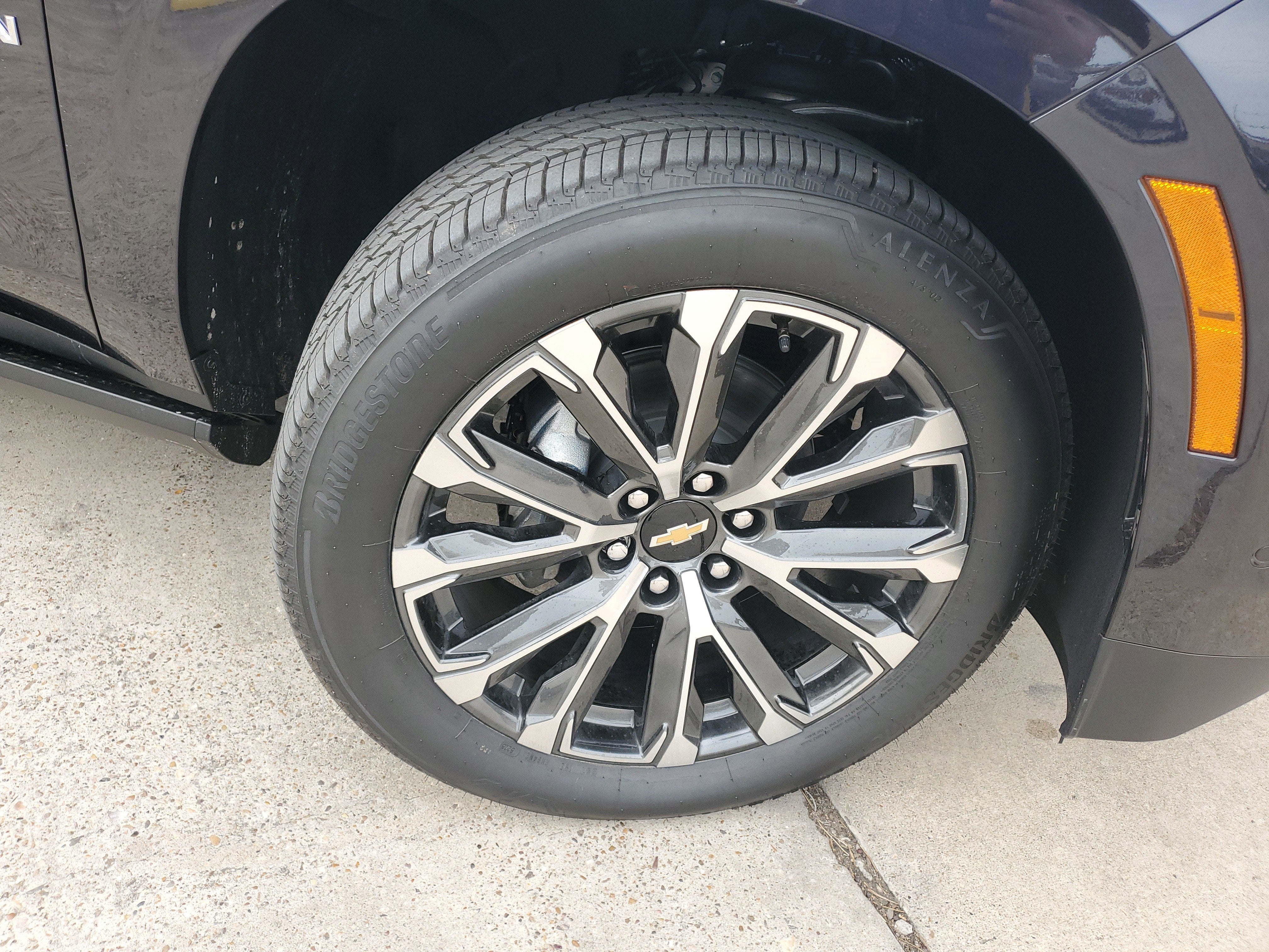 Wipers, front intermittent, Rainsense, Wiper, rear intermittent with washer, Windshield, solar absorbing, Windows, power with rear Express-Down, Window, power with front passenger Express-Up/Down, Window, power with driver Express-Up/Down, Wi-Fi Hotspot capable (Terms and limitations apply. See onstar.com or dealer for details.), Wheels, 22" x 9" (55.9 cm x 22.9 cm) bright machined aluminum and painted After Midnight (Includes (SFE) wheel locks, LPO.), Wheel, full-size spare, 17" (43.2 cm) steel, Warning tones headlamp on, driver and right-front passenger seat belt unfasten and turn signal on.