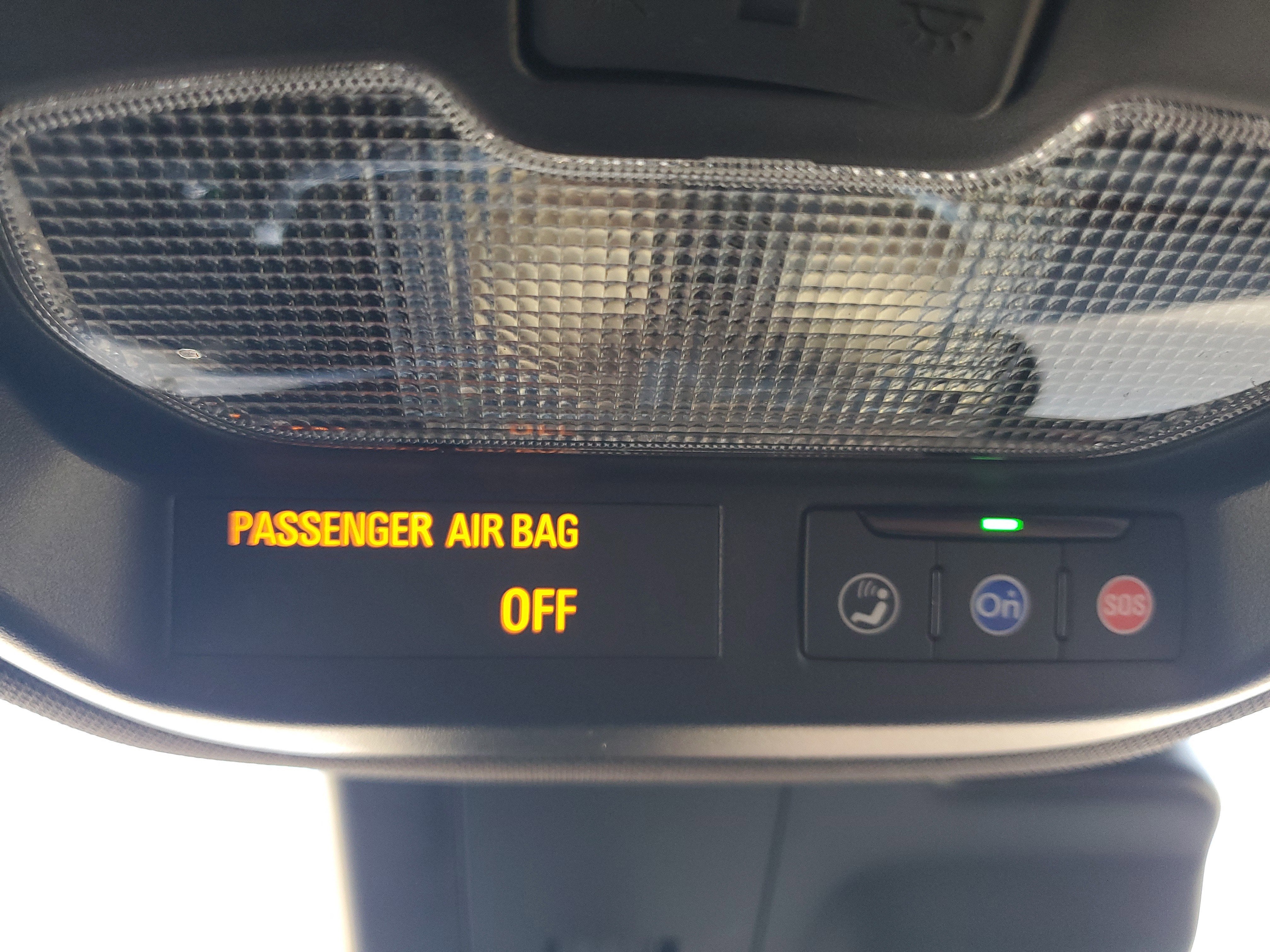 - Includes Passenger Sensing System which automatically switches the front passenger seat frontal airbag on or off and illuminates a status light that indicates whether the airbag is on or off1